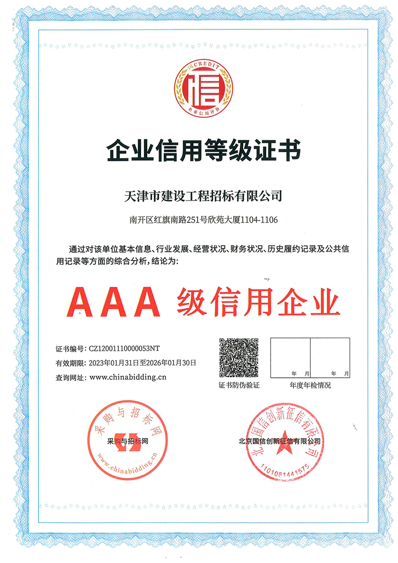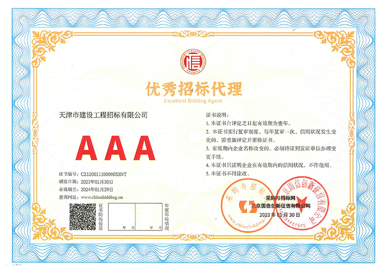 喜訊!天咨下屬招標(biāo)公司獲評(píng)3A級(jí)信用企業(yè)和3A級(jí)優(yōu)秀招標(biāo)代理企業(yè)